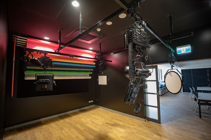 A Glimpse Inside The studio stands as a beacon of inspiration, inviting students to explore the world of photography in a safe and professional environment. This remarkable conversion has breathed new life into an old classroom, creating a space that speaks volumes about the college's dedication to providing exceptional educational facilities. Unveiling the Features The heart of the studio lies in its features, meticulously designed to offer students an unparalleled photography experience: Backdrop Versatility: The studio boasts a 4-Hook and 3-Hook Expan mounted backdrop system with an array of 7 captivating backdrops. From vibrant hues to subtle shades, students can effortlessly set the tone for their creative vision. Illuminating Brilliance: Lighting plays a pivotal role in photography, and the studio delivers nothing but the best. High-quality LED lighting, including a combination of Ultrasoft panels and Bowens Mount continuous lighting, ensures that every detail is brought to life. Ceiling-Mounted Innovation: Safety meets functionality with the innovative 4 Pantograph Ceiling Track System that supports the entire lighting setup. Not only does this keep cables off the floor, eliminating tripping hazards, but it also maximizes the usable space, providing students with an unobstructed area to explore their craft.