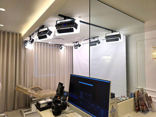 Dragon Studio Solutions designed a clean, ceiling-mounted lighting system using the LightPro 40B Tracklights, chosen for their high-quality output, adjustable colour temperature, and ability to provide completely even illumination for skin tones—crucial for dental portrait work.